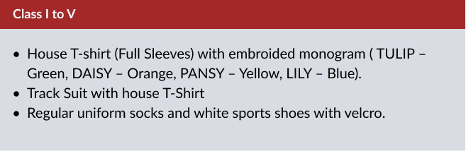 For Cl. Play Group to V - Monday to Friday